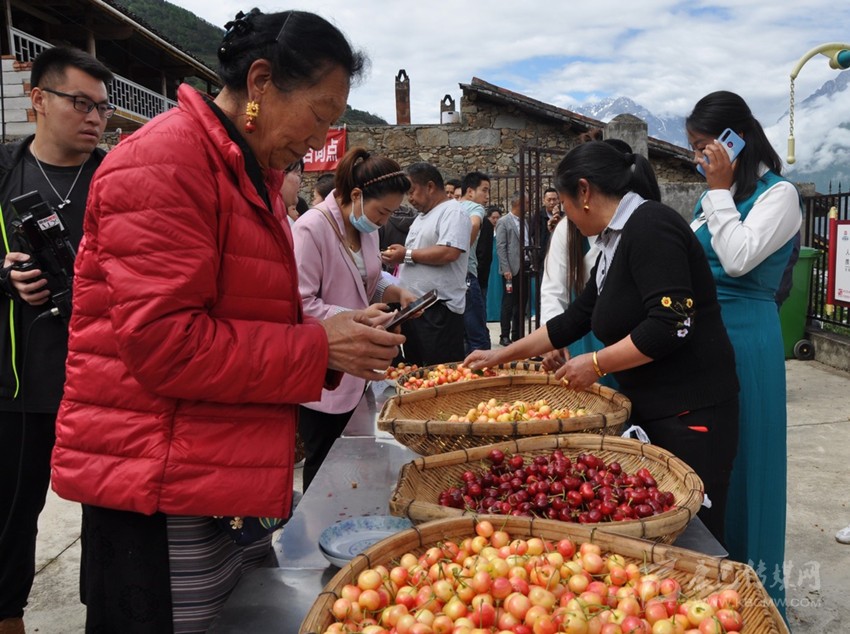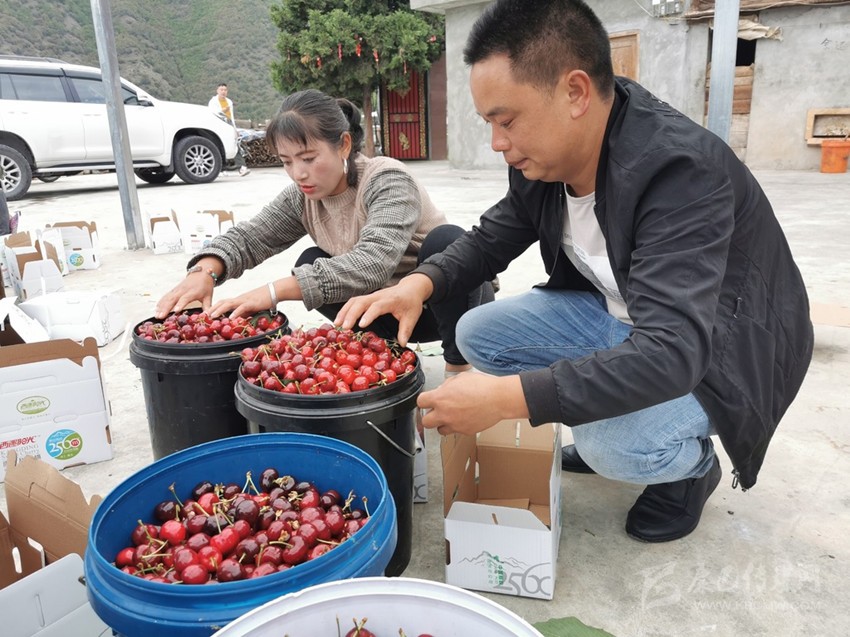 五月的大渡河沿岸鮮花怒放、瓜果飄香,黃橙橙的枇杷,紅彤彤的櫻桃沉甸甸地掛滿枝頭。近日,“鄉(xiāng)村振興·櫻你而美”康定市甜櫻桃采摘品鑒現(xiàn)場會在該市姑咱鎮(zhèn)莊上村舉行。拉賓斯、布魯克斯、美早、早紅珠、晚紅珠、紅燈、明珠等10多個品種大櫻桃均已成熟,各路客商紛紛與村合作社對接訂貨。