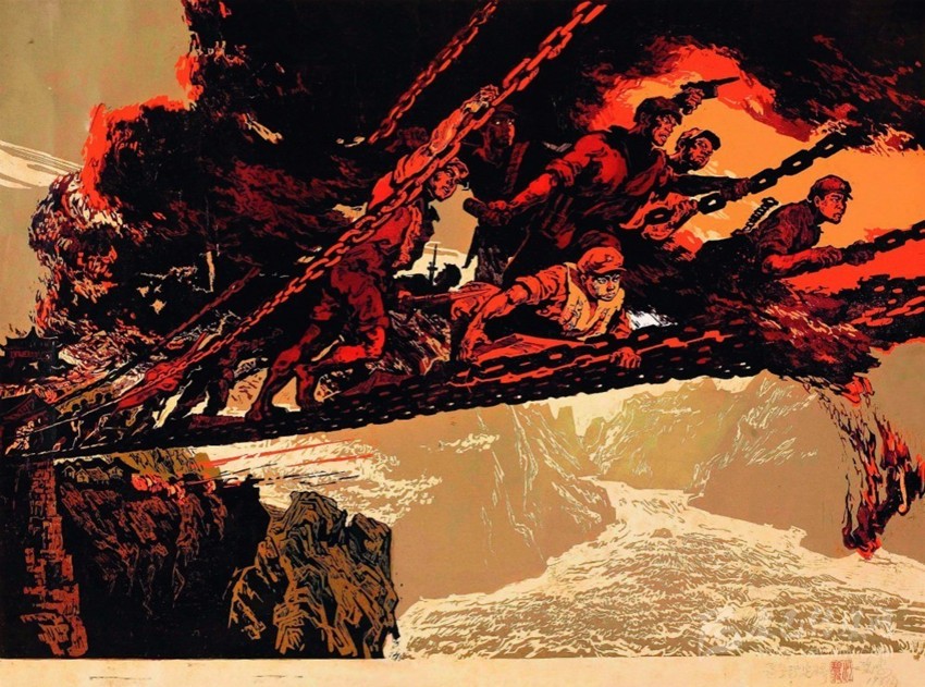 中革軍委于1935年5月26日命令紅一軍團(tuán)及主力在兩天半內(nèi)向?yàn)o定橋急進(jìn)。紅一軍團(tuán)將奪取瀘定橋的任務(wù)交給了王開湘、楊成武領(lǐng)導(dǎo)的紅4團(tuán)。紅4團(tuán)遂沿著大渡河西岸向?yàn)o定橋一路飛奔,邊走邊打。沿途山路陡峭崎嶇,危機(jī)四伏。