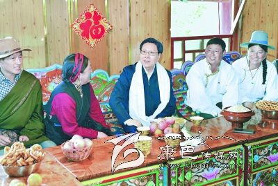藍(lán)天白云下,雀爾村一幢幢藏式崩柯民居錯(cuò)落有致地坐落在高原上。王東明走進(jìn)游客中心,認(rèn)真聽(tīng)取旅游新村規(guī)劃介紹,詳細(xì)了解特色景點(diǎn)打造、旅游產(chǎn)品開(kāi)發(fā)等情況。在藏族村民仁真翁姆家中,王東明與她拉起家常,仔細(xì)詢問(wèn)就業(yè)、收入等情況。仁真翁姆說(shuō),“黨委政府幫助村里修通了道路,做好了規(guī)劃,指導(dǎo)我們搞旅游,大家的收入都提高了。感謝黨的好政策。”在村支書巴都家中,王東明細(xì)致詢問(wèn)基層黨組織建設(shè)、黨員作用發(fā)揮等情況,勉勵(lì)他發(fā)揮好帶頭作用,帶領(lǐng)村民共同致富奔小康。臨別之際,王東明對(duì)有關(guān)負(fù)責(zé)同志說(shuō),發(fā)展旅游業(yè)不僅能夠增加群眾收入,而且有利于加強(qiáng)思想交融、推動(dòng)社會(huì)進(jìn)步。藏區(qū)自然風(fēng)光優(yōu)美、民俗風(fēng)情濃郁、宗教文化元素獨(dú)特,具有發(fā)展旅游業(yè)得天獨(dú)厚的條件。一定要精心編制旅游發(fā)展規(guī)劃,加快基礎(chǔ)設(shè)施和配套服務(wù)設(shè)施建設(shè),下決心把藏區(qū)旅游業(yè)做大做強(qiáng)。