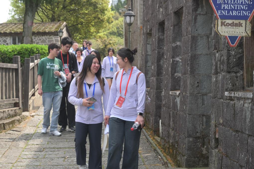 ??3月25日,福州大學(xué)外國(guó)語(yǔ)學(xué)院學(xué)生(前右)與美國(guó)太平洋大學(xué)學(xué)生(前左)在福州鼓嶺老街漫步交流。當(dāng)日,來自美國(guó)俄勒岡大學(xué)、布朗大學(xué)、奧斯威格高級(jí)中學(xué)等校的美國(guó)學(xué)生與福州大學(xué)學(xué)生齊聚福州鼓嶺,參加“讀懂中國(guó) 相約福建”友好交流活動(dòng)。兩國(guó)青少年走訪鼓嶺老街、萬(wàn)國(guó)公益社、柳杉王公園等,感受鼓嶺百年中外交融歷史風(fēng)貌,了解中美交往往事,暢談期待與希望,再續(xù)中美民間友好交往的“鼓嶺故事”。 新華社記者林善傳攝