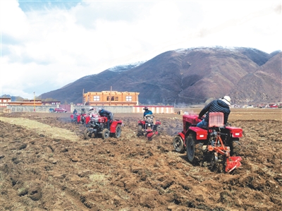 本網(wǎng)訊(唐書偉 攝影報道)正值春耕時節(jié),甘孜縣南多鄉(xiāng)非貧困村俄絨村的田地里機(jī)器轟鳴,新翻的泥土彌漫著濃濃的春意。在鄉(xiāng)黨委政府的帶領(lǐng)下,村民們忙著種植劍舌豌豆,一派忙碌景象。 據(jù)悉,甘孜縣黨委、政府在脫貧攻堅工作中堅持一個村都不拉下,不僅僅抓好今年退出村的產(chǎn)業(yè)發(fā)展,還為非貧困村爭取了近1000畝劍舌豌豆、紅豆草等種植項目。