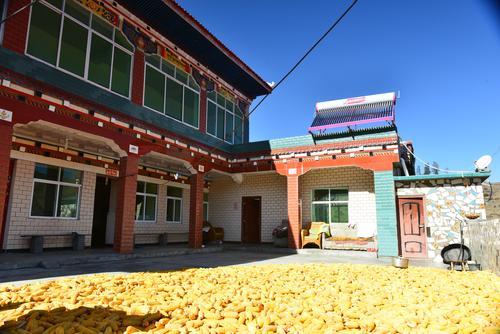 初夏的清晨,有隔夜晶瑩的露珠在花瓣上閃閃發(fā)光,迎接著朝陽(yáng)?!皝?lái)來(lái)來(lái),酥油茶都倒好了,大家先到樓上喝茶,今天中午美酒佳肴管吃管飽哦!”36歲牧民來(lái)讓登真熱情的招呼著客人們?!袄耄炔豢椓耍s緊,去把那兩箱好酒找出來(lái)!”“對(duì)了,快打電話,把你哥也喊過(guò)來(lái)陪下客人些(客人們)!”……這“管吃管飽”的“好酒”和熱情的服務(wù)接待,正悄無(wú)聲息的向大家展示著改革開放40年來(lái)農(nóng)牧區(qū)的巨大變化。