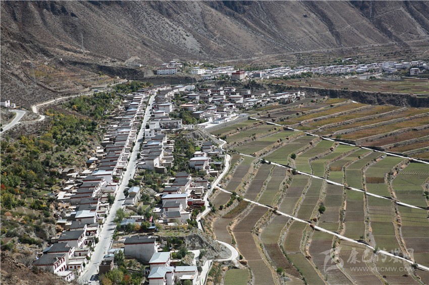 作為處于高山峽谷間的得榮縣鄉(xiāng)村,村民大多生活在懸崖峭壁上,或地質(zhì)災(zāi)害嚴重的地區(qū),生存條件極差,為了徹底斬除窮根,縣委、縣政府把開發(fā)的目光投向了地勢相對平坦的因都壩。11月10日,記者再訪因都壩。初冬的因都壩陽光燦爛,溫暖如春。一棟棟民居、一層層梯田橫臥在青山綠水間,蔚為壯觀。農(nóng)閑季節(jié),村民們愜意地坐在自家庭院的亭子里,喝著酥油茶、品嘗著藏橘、梨子、蘋果和核桃。村道兩旁的藏橘碩果滿枝頭,寬敞的街道、靚麗的民居,一幅壯美的富春山居圖在金沙江畔徐徐展開。