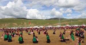 8月4日下午,作為2018四川·理塘第二屆倉(cāng)央嘉措詩(shī)歌節(jié)子項(xiàng)目的縣舞比賽和千人鍋莊表演在理塘縣八一賽馬場(chǎng)舉行,來(lái)自理塘縣各鄉(xiāng)鎮(zhèn)、縣級(jí)各部門(mén)的11支隊(duì)伍共800余人參賽。