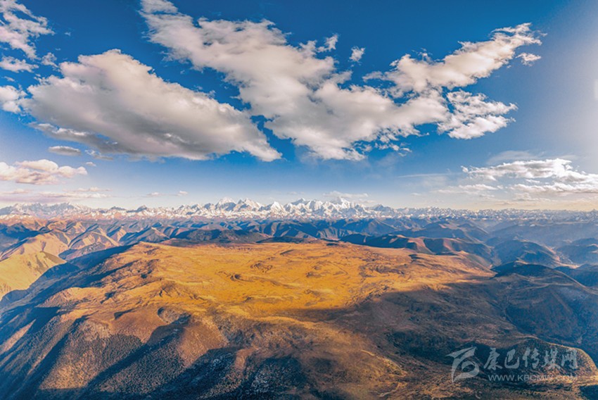 “這是一處極好的高山觀景平臺,向東南眺望,貢嘎山似乎近在咫尺,直線距離約46公里,這是由西北方向觀賞貢嘎山的很好視角。視線所及處,還能欣賞到整個大雪山脈的雪嶺冰峰嵯峨逶迤。更奇特的是,冷古納托與周圍大面積的丘狀高原,呈現(xiàn)出一個近于水平的山原面,就像一個波濤起伏的海平面,而貢嘎山及其大雪山脈,就像突出于海面上的冰山?!?在川西拍攝過無數(shù)美景的樊覓韻,也為“冷谷納托”的雄壯奇麗而傾倒,“川西橫斷山區(qū)的崇山峻嶺里,為什么會出現(xiàn)這樣‘遺世獨(dú)立’的平闊山原呢?大自然的造化神秀讓人嘆服?!?/span>