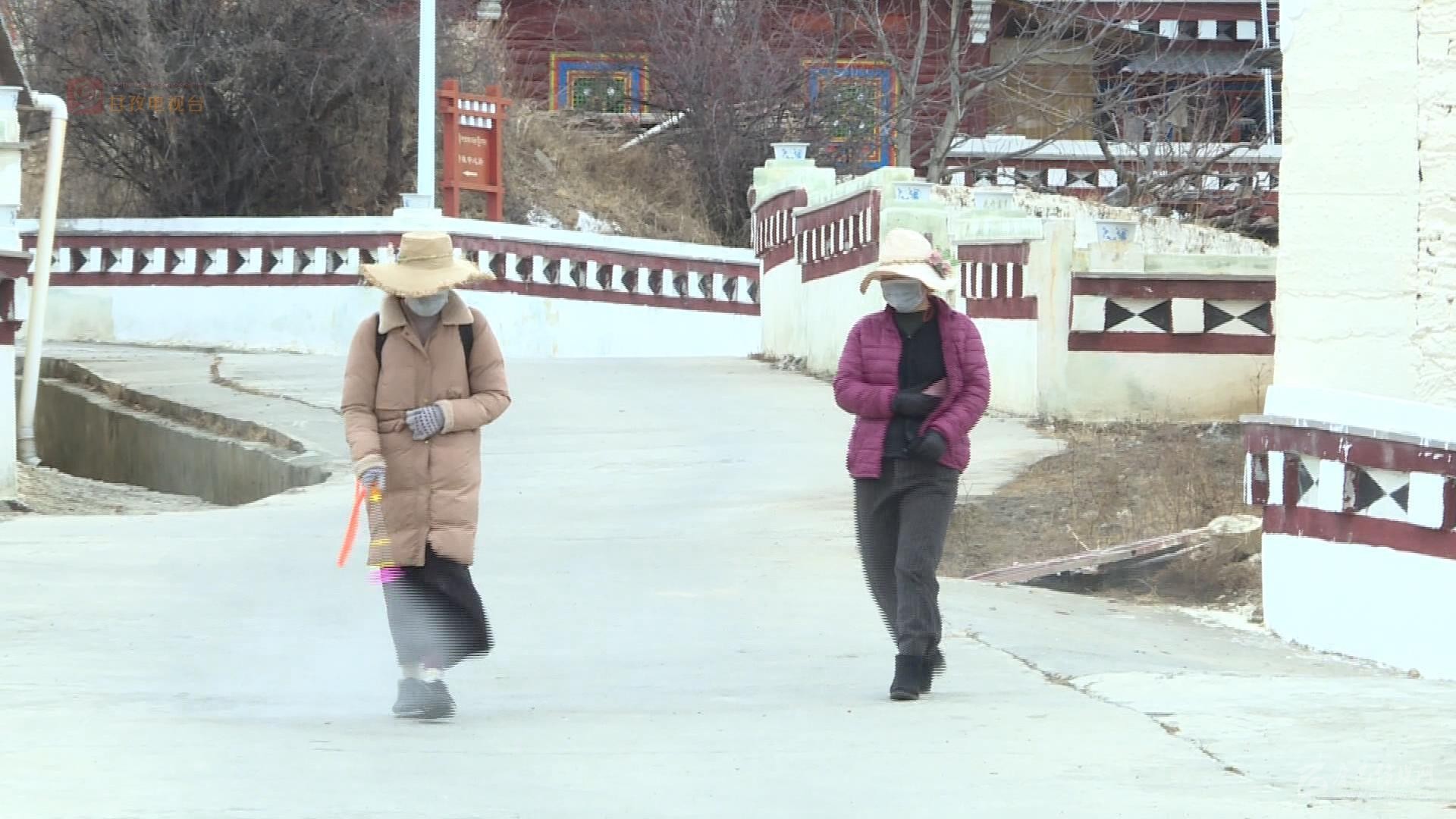 除了7個州縣級卡點(diǎn)外,在各鄉(xiāng)村同樣是嚴(yán)防死守,筑牢了嚴(yán)控疫情的第一防線。在距離縣城三公里的格西鄉(xiāng)若珠村村口,我們看到村黨支部書記澤機(jī)和村委會主任尼瑪降澤頂著寒風(fēng)依然駐守在卡點(diǎn)上。尼瑪降澤介紹說全村有65戶283人,他說支部書記負(fù)責(zé)村口卡點(diǎn)的24小時值守,其余六名村干部就負(fù)責(zé)包戶巡邏檢查,每天村里的消毒,村民的體溫監(jiān)測統(tǒng)計(jì)等等,大家都繃緊著嚴(yán)防死守這根弦。